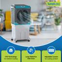 Stay cool and comfortable with the Symphony Maxwind 120EX, a high-performance desert air cooler. Designed for those who seek an instant cool blast of air, this desert air cooler is perfect for large rooms, and offices The 3-side honeycomb cooling pads maximize cooling efficiency while being easy to clean, ensuring long-lasting performance. With a powerful exhaust fan, this Symphony air cooler for home delivers strong airflow, making it an ideal choice for large rooms, patios, balconies, or even semi-outdoor spaces. Whether in a city apartment, a suburban home, or a rural village, it provides reliable cooling in any setting. Despite its robust cooling capacity, this air cooler operates on just 230W, making it energy-efficient and cost-effective. The easy-fill tank simplifies water refilling, ensuring uninterrupted cooling for hours. Its compact design allows effortless placement in any room without occupying too much space. Built with Symphony’s trusted CFD cooling technology, the Maxwind 120EX desert air cooler offers a reliable and eco-friendly cooling solution for all your summer needs. Experience powerful, efficient, and hassle-free cooling with the Symphony Maxwind 120EX – the perfect addition to your home for ultimate summer comfort.