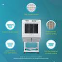 The Symphony Jumbo 65DB desert air cooler comes with a large tank, cooling pads with a large area, a cool flow dispenser and more that helps you keep cool and comfortable.