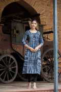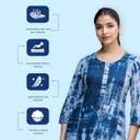 SYMPLE Women's Blue Round Neck Calf Length Kurta