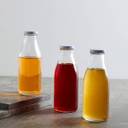Perfect for storing and serving milk, juice, shakes, and other beverages, Features a white metal cap with airtight seal to prevent leaks and maintain freshness, Crafted from transparent, high-quality glass that allows easy viewing of contents, Ideal for both storing beverages in the refrigerator and serving drinks at the table, Classic milk bottle shape with smooth finish and wide mouth for easy filling and cleaning