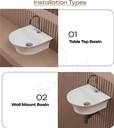 Elevate the style and functionality of your bathroom with the Syon SWING Premium Ceramic Table Top & Wall Mount Wash Basin (SYON075) — a perfect blend of elegance, versatility, and modern design. Expertly crafted from high-quality ceramic, this basin offers exceptional durability, stain resistance, and long-lasting shine. Its dual installation design allows you to use it as either a table top basin or a wall-mounted basin, giving you the freedom to customize your bathroom layout with ease.