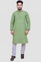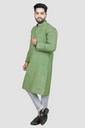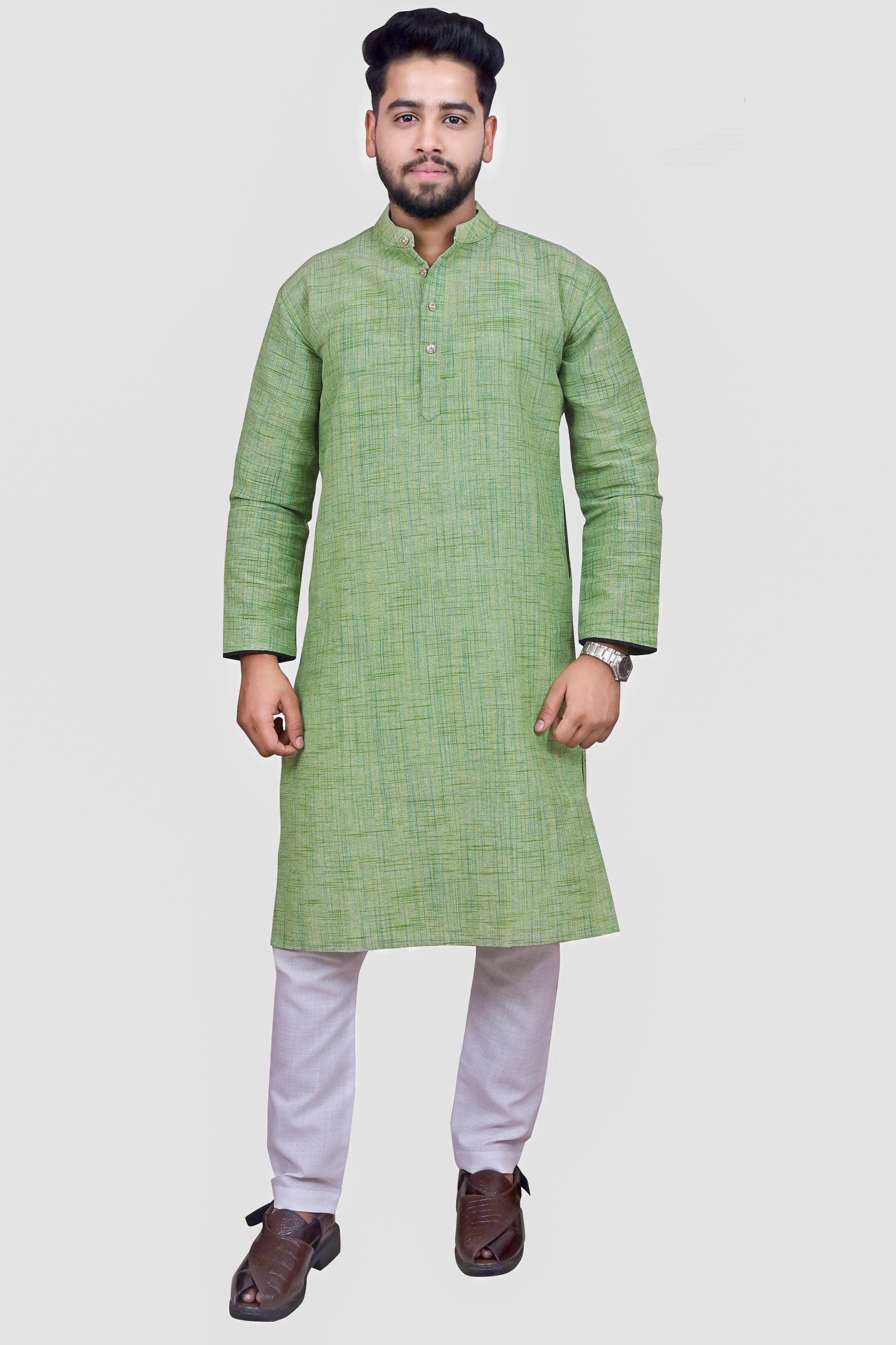 This traditional Indian kurta pajama set from ABDP Fashion includes a top (kurta) with and a bottom (Pajama). Loose fitting sleeves and slits along the sides allow for an easy fit and let air circulate freely through the garment. The pant included in this kurta pajama set has a relaxed fit through the seat and legs for absolute comfort. regular comfortable fitting makes it a great wear.