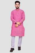 This traditional Indian kurta pajama set from ABDP Fashion includes a top (kurta) with and a bottom (Pajama). Loose fitting sleeves and slits along the sides allow for an easy fit and let air circulate freely through the garment. The pant included in this kurta pajama set has a relaxed fit through the seat and legs for absolute comfort. regular comfortable fitting makes it a great wear.