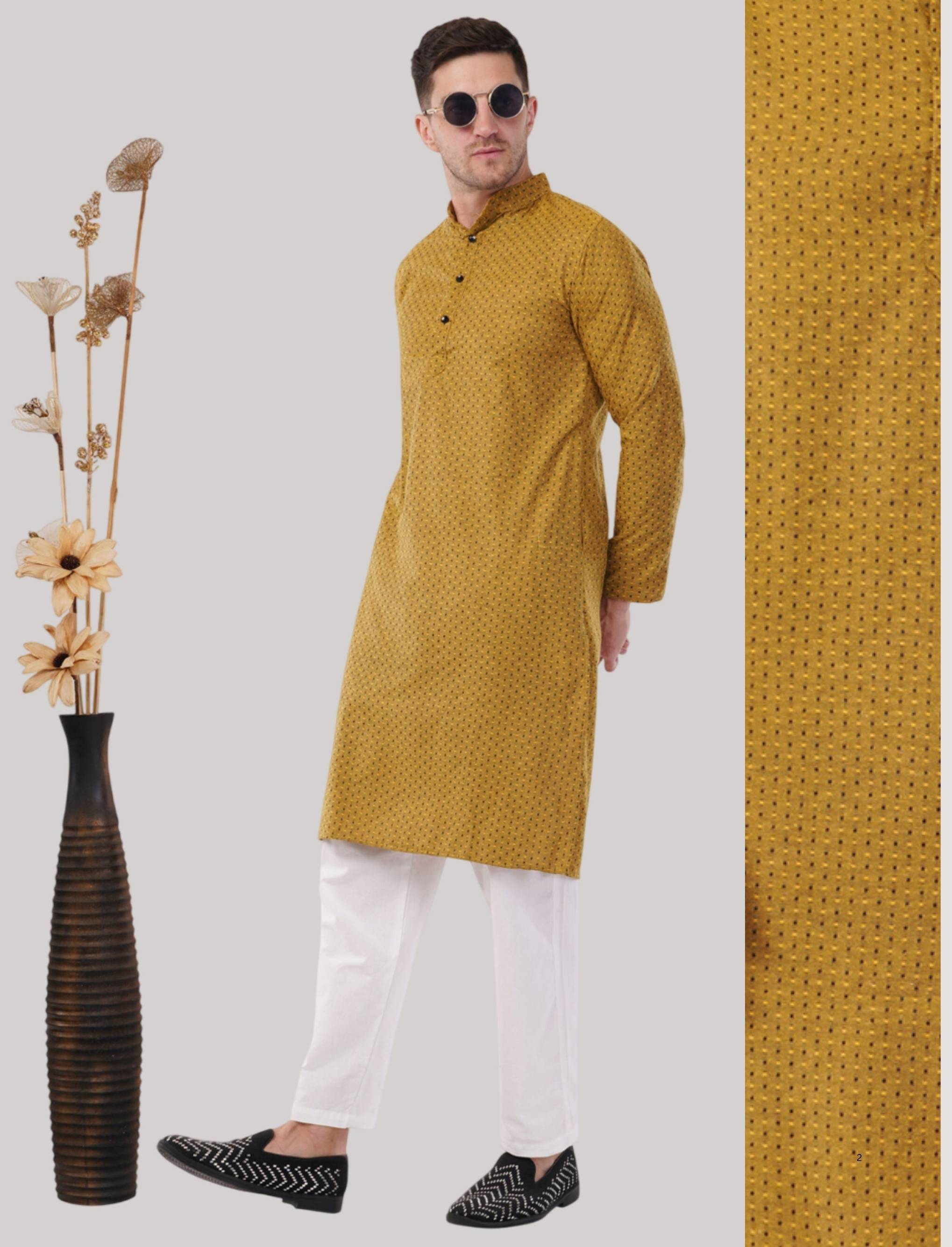 This traditional Indian kurta pajama set from Sypher Boutique includes a top (kurta) with and a bottom (Pajama). Loose fitting sleeves and slits along the sides allow for an easy fit and let air circulate freely through the garment. The pant included in this kurta pajama set has a relaxed fit through the seat and legs for absolute comfort. regular comfortable fitting makes it a great wear.