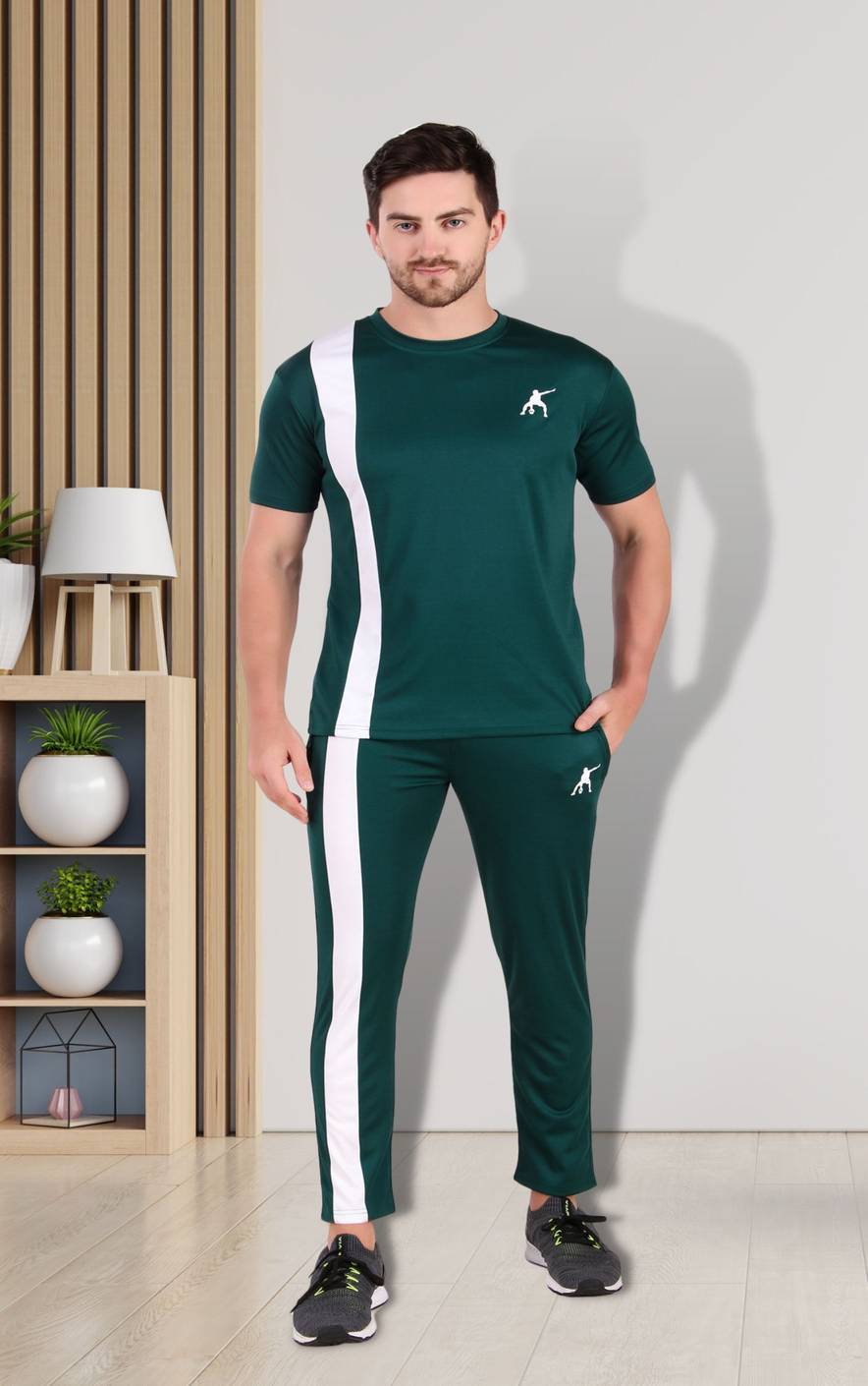 SYS Men Striped Dark Green Night Suit Set