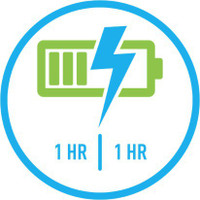 A rapid charge technology gives you one hour of working time with just one hour of charge.