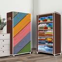 systumm 5 Layer Colorful Wood Print PP Collapsible Wardrobe (Finish Color - Colorful Wood Print, DIY(Do-It-Yourself))