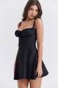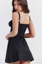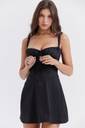 Turn heads with the SYYNCRO Women's Black Corset Cotton Mini Dress, designed to sculpt, flatter, and elevate your style. Crafted from premium stretch cotton, this mini dress features a fitted corset-style bodice with a romantic ruched bust and adjustable straps for the perfect fit. The back boasts a chic lace-up design, giving it a sultry yet elegant edge while allowing for a custom fit.The A-line skirt adds a flirty flair, balancing the structured top with effortless movement—making it ideal for dancing the night away or creating a bold statement at your next dinner date. Whether you're heading to a party, club, or special evening out, this black corset mini dress is the ultimate go-to outfit.Pair it with heels and a statement necklace for a glam look or style it with boots and a leather jacket for edgy vibes. Whatever your mood, this dress makes sure all eyes stay on you.