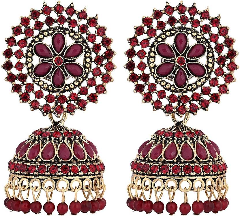 The earrings feature a stunning design adorned with intricate filigree work, delicate patterns, and fine embellishments, all meticulously handcrafted by skilled artisans. The centrepiece of these earrings is a resplendent, colorful gemstone that adds a touch of vibrancy and opulence.