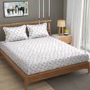T9decorist Microfiber, Cotton Double Fitted (Elastic) 300 TC Printed Bedsheet (Pack of 1, White-Red)