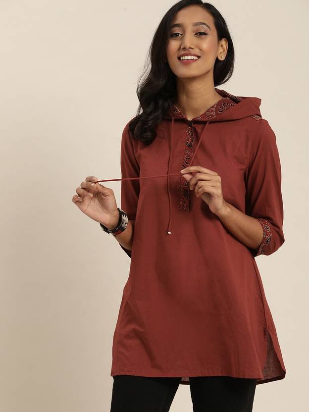 Women Printed Pure Cotton A-line Kurta (Maroon)
