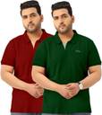 TAB91 Pack of 2 Men Solid Polo Neck Pure Cotton Maroon T-Shirt