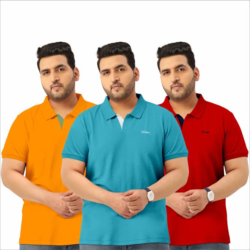TAB91 Pack of 3 Men Solid Polo Neck Polycotton Red, Gold T-Shirt