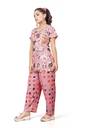 Women Night Suit Set Pink Printed