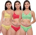 Bra & Panty Set Polka Print Green, Red, Yellow Lingerie Set