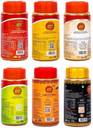 | Ingredients | - Maharashtrian Mix Masala - Red Chilli Crushed, Asafoetida, Turmeric, Red Chilly Powder, Garlic, Dehydrated Ginger, Coriander, Cumin Whole, Dehydrated Onion, Rock Salt, Dry Mango Powder 2)Gujarati ready masala - Fennel Seeds, Asafoetida, Turmeric, Red Chilly Powder, Curry Powder, Jaggery, Cumin, Dehydrated Ginger, Coriander, Dehydrated Onion, Rock Salt. 3)Punjabi ready Masala - Asafoetida, Turmeric, Red Chilly Powder, Cumin, Dehydrated Ginger, Coriander, Dehydrated Onion, Rock Salt, Dry Mango Powder. 4)Marination - Asafoetida, Turmeric, Red Chilly Powder, Cumin, Dehydrated Ginger, Coriander, Dehydrated Onion, Rock Salt, Dry Mango Powder. 5) Jain Ready Mix masala - Asafoetida, Fennel Seeds, Turmeric, Red Chilly Powder, Curry Powder , Cumin, Coriander, Rock Salt 6)Desi Masala -