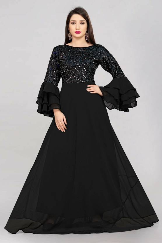 Embroidered Velvet Stitched Anarkali Gown (Blue)