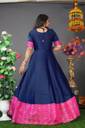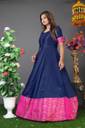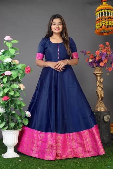 Make a stunning style statement with this elegant floor-length gown dress that beautifully combines traditional and contemporary elements. The dress features a classic black body adorned with a striking pink border that adds a royal touch to your appearance. The thoughtfully designed elbow-length sleeves include contrasting pink accents that complement the border perfectly. The front placket showcases delicate button detailing, while the flared silhouette creates a graceful flow that flatters various body types. The gown's premium fabric ensures comfort throughout extended wear, making it an excellent choice for special occasions, festivals, or formal gatherings. The combination of black with the rich pink border creates a sophisticated look that draws attention while maintaining elegance. This versatile piece can be accessorised with traditional jewellery for a classic look or modern pieces for a contemporary appeal. The dress features convenient closure options and provides ample movement while maintaining its shape throughout wear.