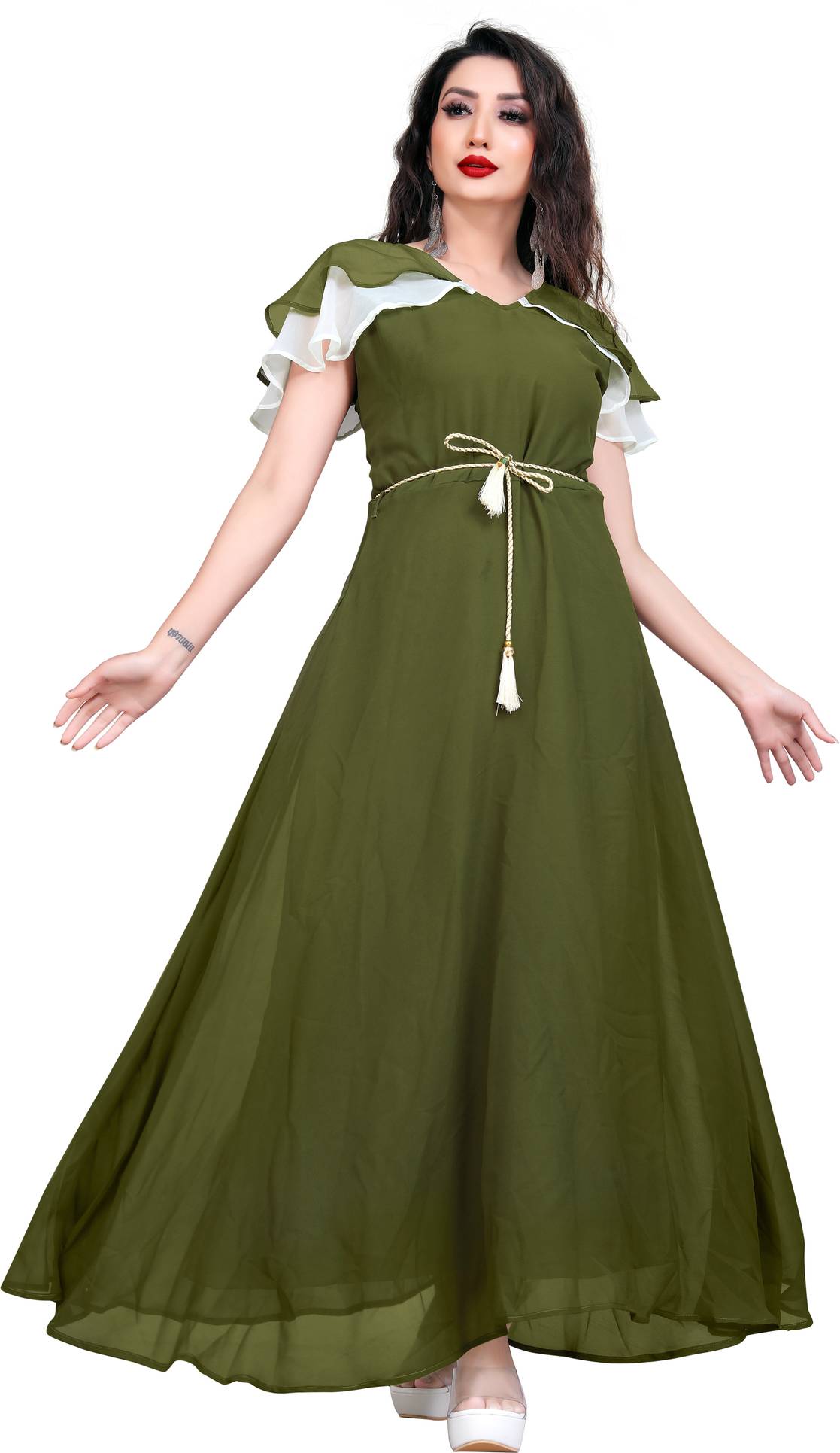 Self Design Georgette Stitched Flared/A-line Gown (Light Blue)
