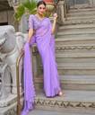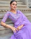 -Made with exquisite quality fabric, this saree flows gorgeously and effortlessly elongates your silhouette. The fabric's softness guarantees comfort all day long, enabling you to move with assurance and grace. -Each saree, which comes in an array of eye-catching hues, is a masterpiece of unmatched artistry and attention to detail. This classic item will add flair to your ethnic outfit because it perfectly combines traditional and modern design elements. -Savor the charm of luxurious handcrafts and leave a lasting impression on future generations. When you add this exquisite hand-embroidered saree to your wardrobe, your style will be sure to turn heads.