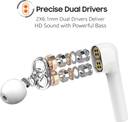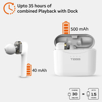 Each of the wireless earbuds can offer a playback time of up to 5 hours, so you can groove to your favorite music albums when you’re traveling. Also, if the charge on the earbuds goes low, you can recharge them using the charging dock. The earbuds and the charging dock offer a total playtime of up to 35 hours.