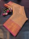 Border: The saree features a beautifully crafted border with detailed zari work, creating a striking contrast against the soft silk base.