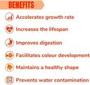 fish food is a highly nutritional diet for all sizes of koi and ornamental goldfish. This formula brings out the vibrant reds and yellows of these pet pond fish. Supplies nutrition for energy, longevity and overall health – feed in spring, summer and fall when water temperatures are 50 degrees and above. This formula contains vitamins for growth, health and metabolism; amino acids for growth and maintenance; fats for a concentrated energy source; and fiber for healthy and efficient digestion