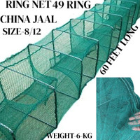 TAJNET Ring Net 60 Feet (Case Net / China Jaal) – HDPE-49 PVC-Coated Iron Rings, 6 kg Fishing Net (Green)