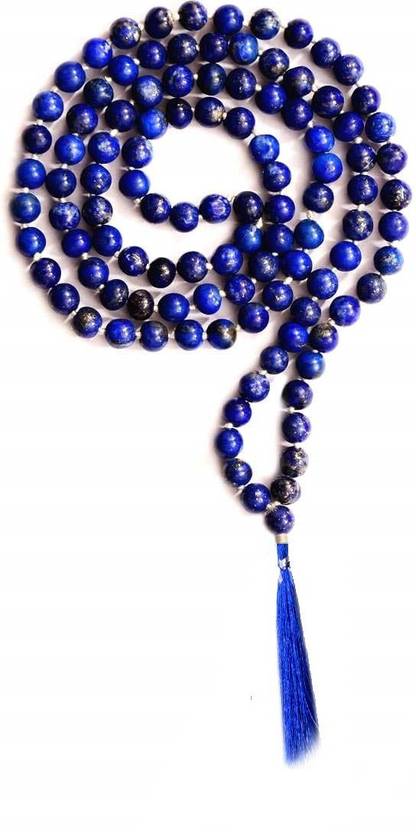 Natural Round Shape Lapis Lazuli Stones Mala for Mantra Chant (Japa) & Wear Dual Purpose Mala. Length : 12.50 Inches (25 Inches Total Around the Neck). Lapis Lazuli is a deep blue opaque gemstone, used in antiquity and continuously used throughout the generations. Encourages self-awareness, allows self-expression and reveals inner truth, providing qualities of honesty, compassion and morality to the personality. Stimulates objectivity, clarity and encourages creativity. Lapis Lazuli assists to confront and speak one's truth and inspires confidence. Certification of the Authenticity is with the product.