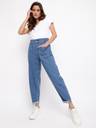 Take that fashion step in utmost style by sporting this solid blue jeans by Tales & Stories. This regular fit jeans is tailored from durable, soft and smooth cotton fabric, which promises great fit and wearing comfort from morning till night. Tailored to precision, it has features like logo engraved button closure, elasticated waist, 2 front pockets and 2 rear welt pockets and belt loops. This ankle length jeans will bestow you with a cool casual look when styled with a printed red T-shirt, open toe sandals and a smart watch.
