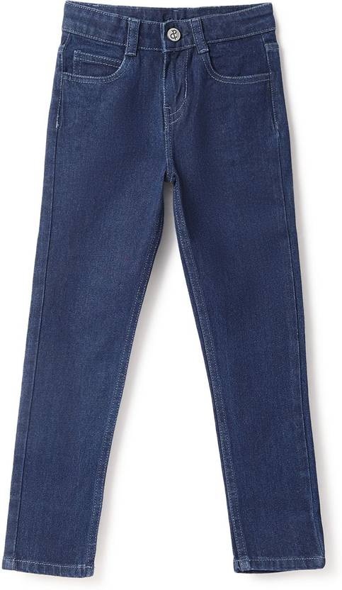 Update his denims collection by introducing this stylish Blue jeans from the latest collection of Tales & Stories. It features a button and a zip closure with two pockets on the front along with a coin pocket and two at the back. Tailored to a slim fit. Adorned with a solid pattern and a clean design, it makes up for a timeless choice. Crafted with rich quality Lycra, it ensures the utmost comfort and promises a soft touch against the skin during extended hours. Team it with a cute shirt and white sneakers to complete the look like a pro.