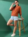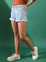 Step into comfort and style with the Tales & Stories Women's Shorts in light blue color. Perfect for your casual days, these shorts blend cotton and polyester to give you a soft, durable wear. They feature a trendy enzime wash effect, four handy pockets, and a button for easy closing. Designed to hit just the right length above the knee and with a mid-rise waist, they offer a perfect fit for any outing. Plus, they're super easy to care machine wash.