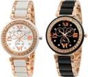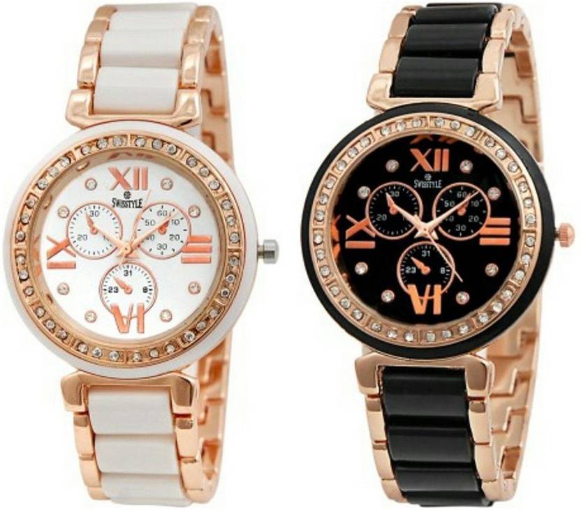 2018 Special Party Wear Collection For Trendy And Beautiful Look Black & White Roman Round Dial And Black Gold -White Gold Metal Strep RRMINABKGOLDWHGOLD