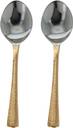 DOUBLE THE SERVICE Includes two 8 Inches serving spoons stainless steel. Specially Designed for Home, Restaurant, Bars and Catering Service STAINLESS STEEL SERVING SPOON ENDS Ultra durable and non reactive for years of maintenance free use PERFECT FOR SERVING Use for dishing out entrees & sides; Ideal for curries & daal HANDSOME COPPER HANDLES With a pleasing hammered texture for added style