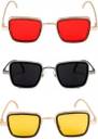 UV Protection Retro Square Sunglasses (Free Size) (Red, Yellow, Black)
