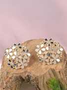 Tanaira bold statement round handmade earrings with 18 k Silver plated - superior quality brass metal, shining mirror work and American diamond bring your style to a whole new level .