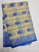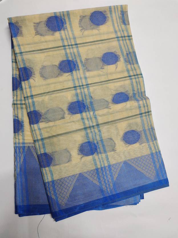 TanaPoren Self Design Tant Pure Cotton Saree  (Cream, Blue)