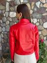 Elevate your wardrobe with this stunning red leather jacket, a perfect blend of style and sophistication. Crafted from premium quality leather, it offers a luxurious feel while ensuring durability and comfort. The bold red hue makes a striking statement, ideal for both casual outings and more formal occasions. With its tailored fit and timeless design, this jacket is not just an outerwear piece; it's a fashion essential that will enhance any ensemble. Embrace your inner trendsetter and make this exquisite jacket a staple in your collection.
