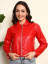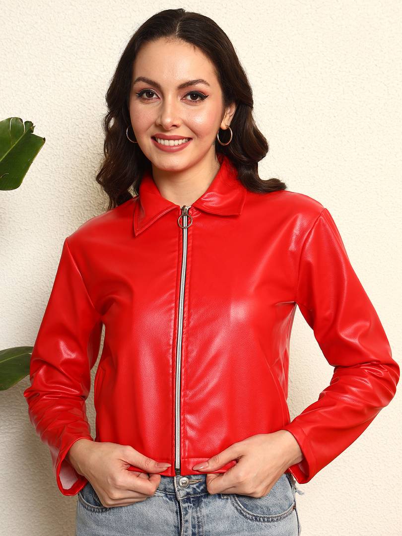 Elevate your wardrobe with this stunning red leather jacket, a perfect blend of style and sophistication. Crafted from premium quality leather, it offers a luxurious feel while ensuring durability and comfort. The bold red hue makes a striking statement, ideal for both casual outings and more formal occasions. With its tailored fit and timeless design, this jacket is not just an outerwear piece; it's a fashion essential that will enhance any ensemble. Embrace your inner trendsetter and make this exquisite jacket a staple in your collection