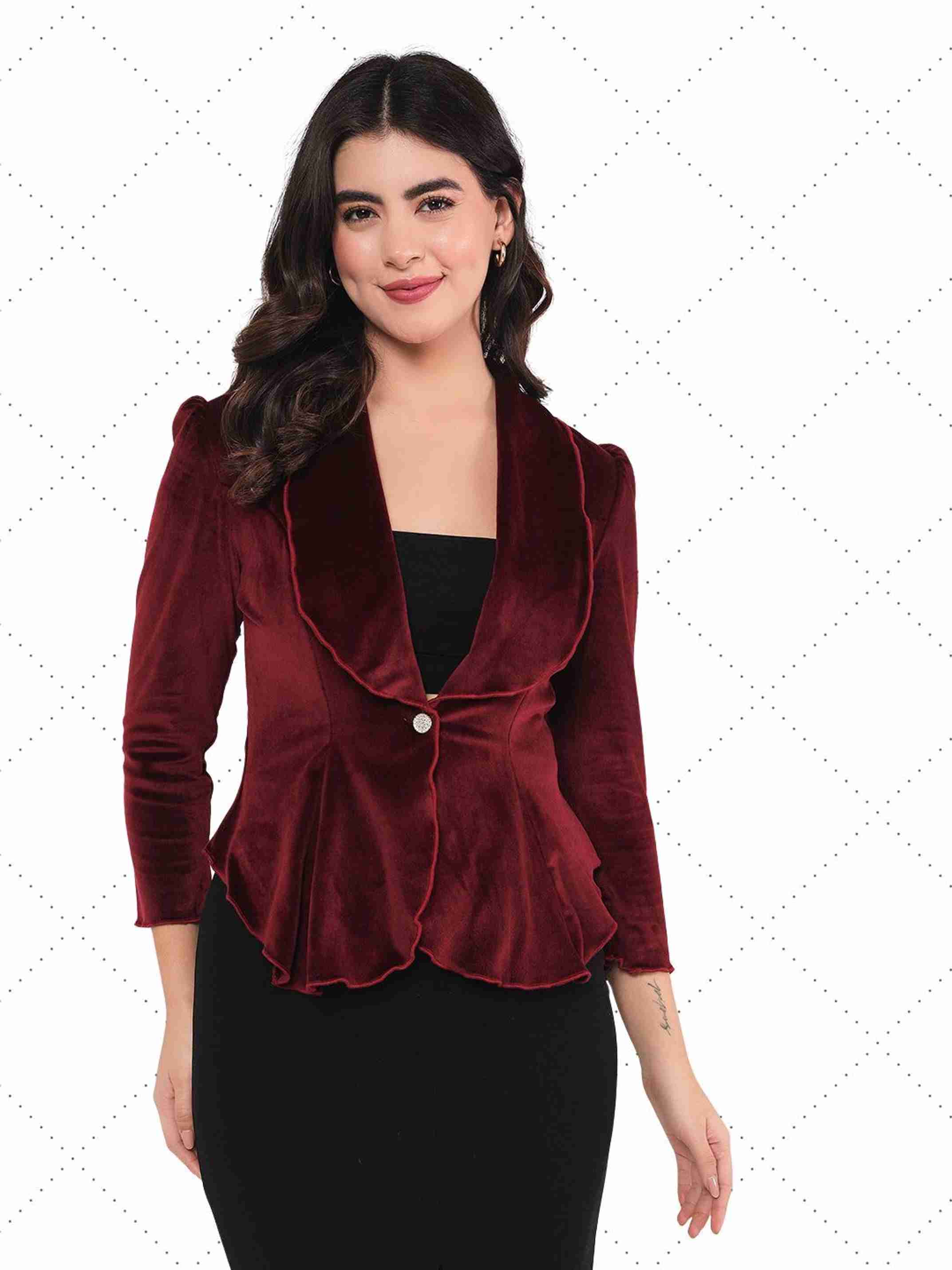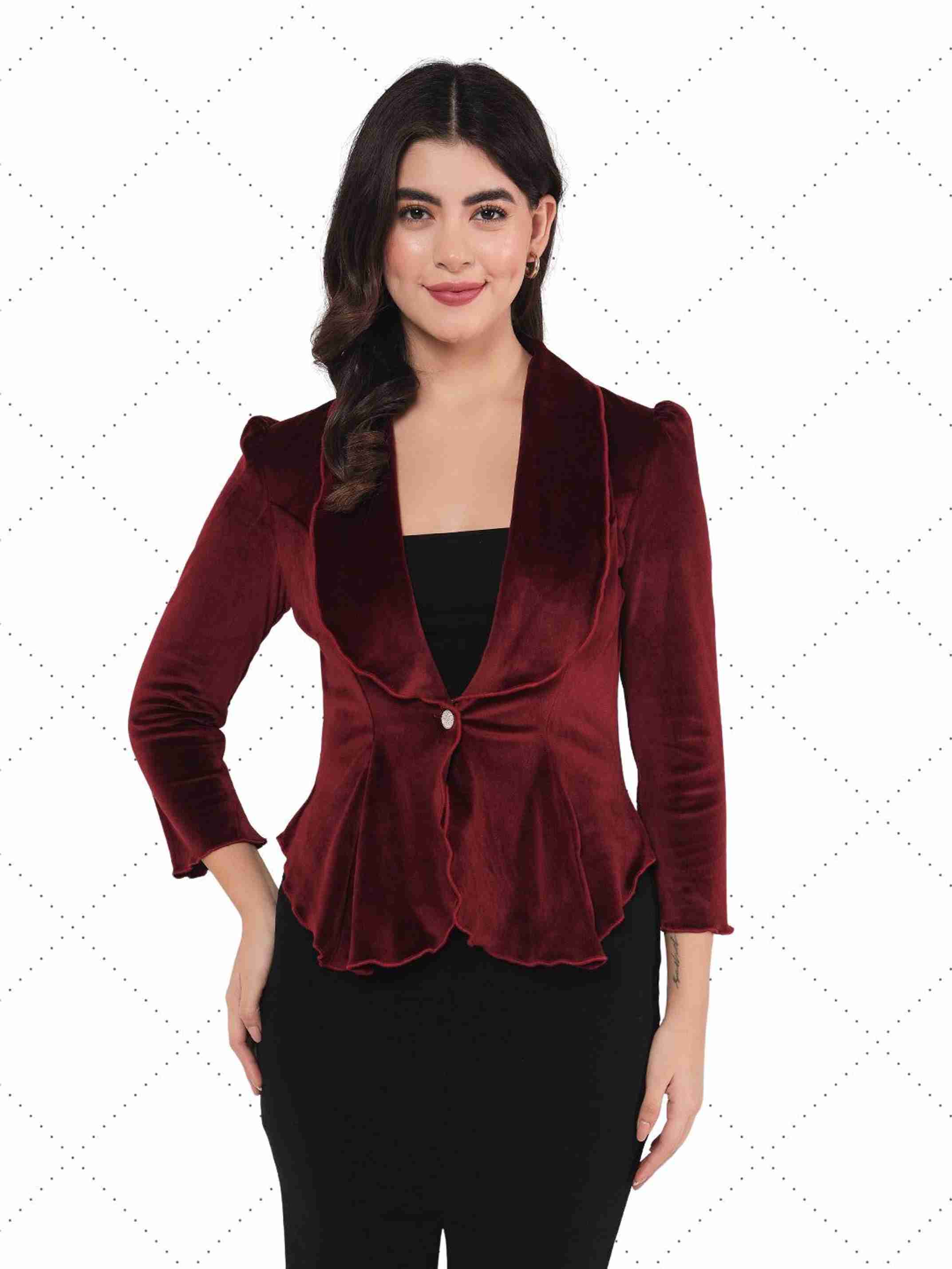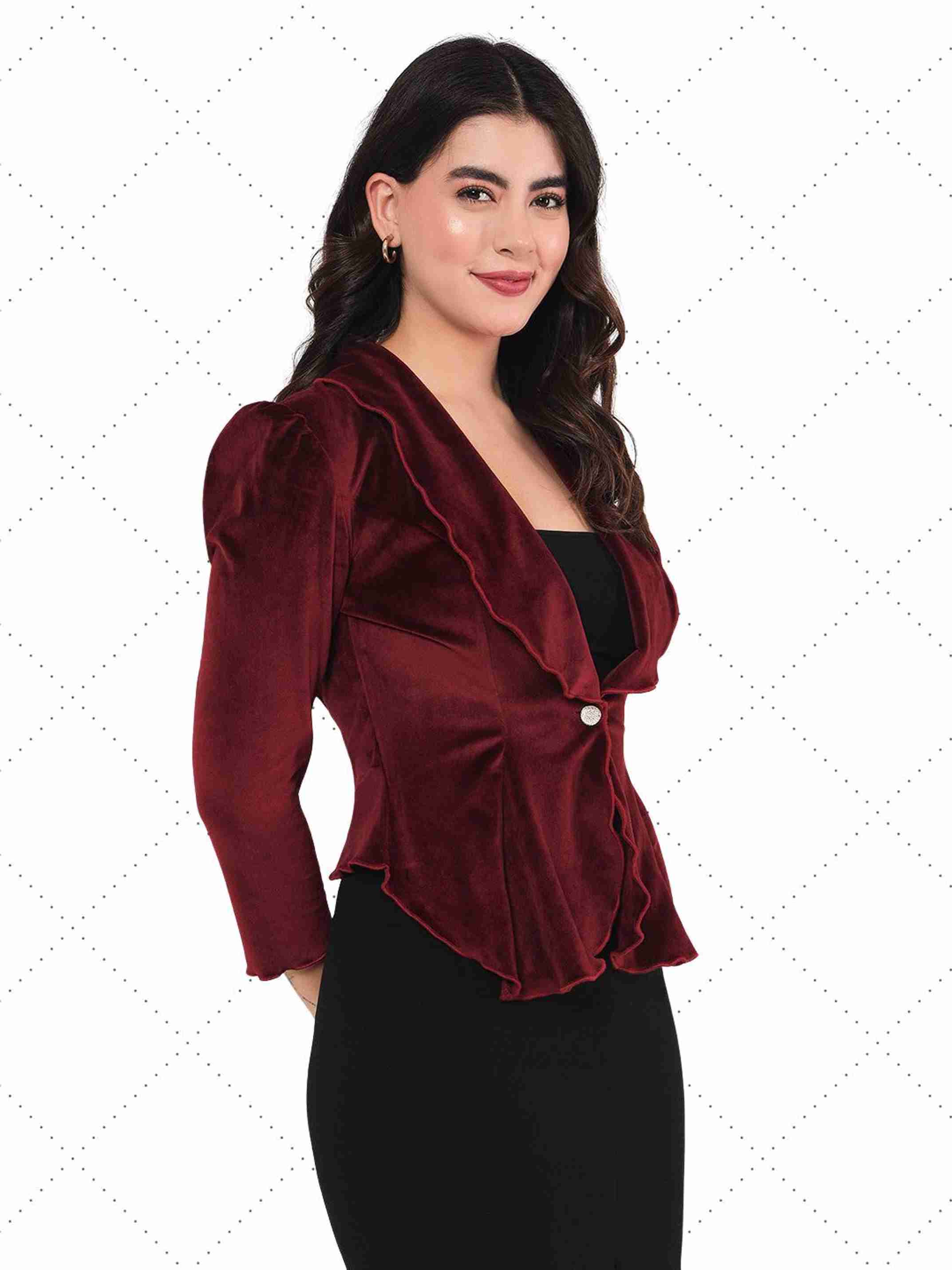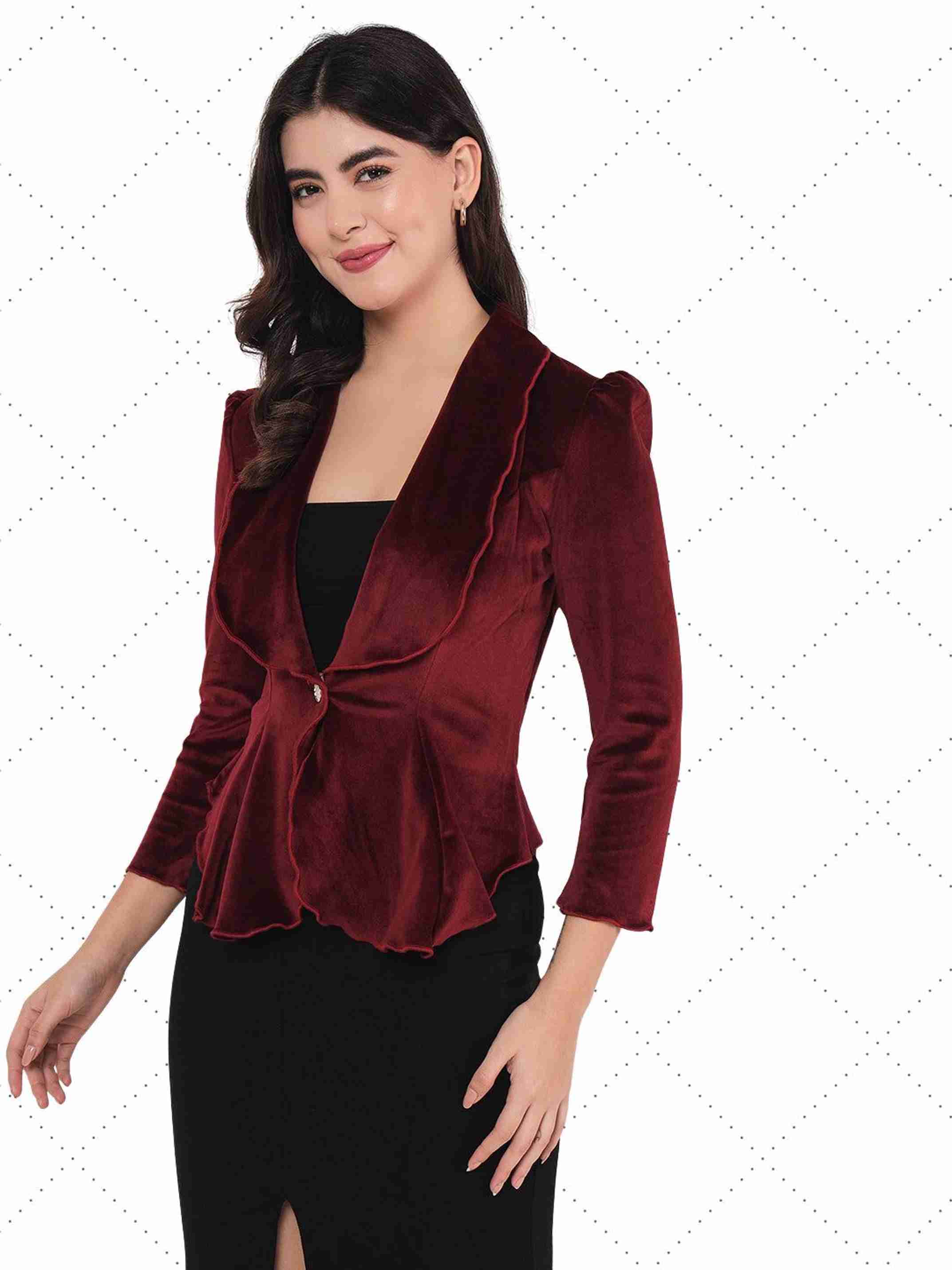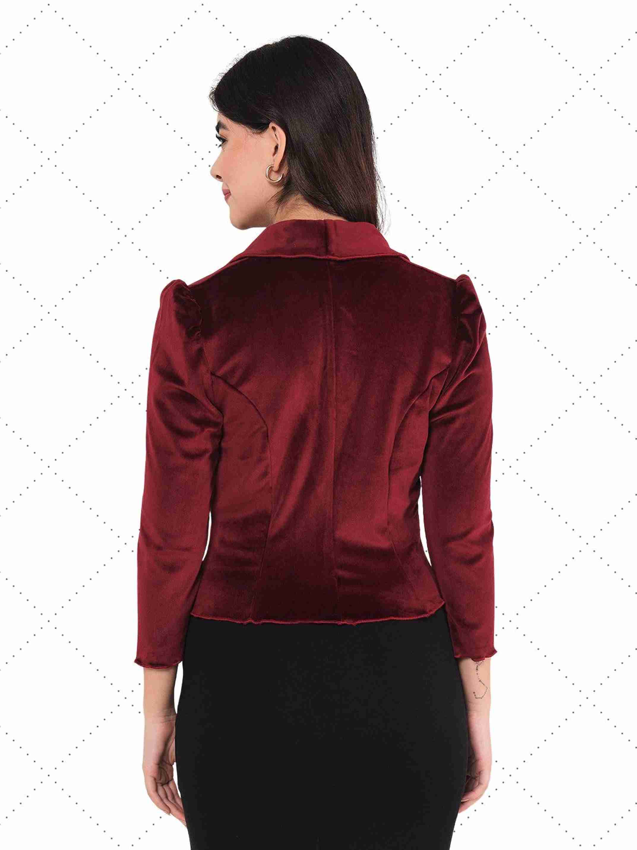 Women Solid Single Breasted Casual Blazer (Maroon)