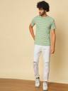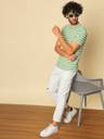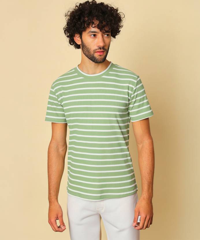 TANDUL Striped Men Round Neck White, Light Green T-Shirt