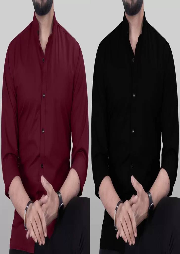 Men Regular Fit Solid Mandarin Collar Casual Shirt (Pack of 2)