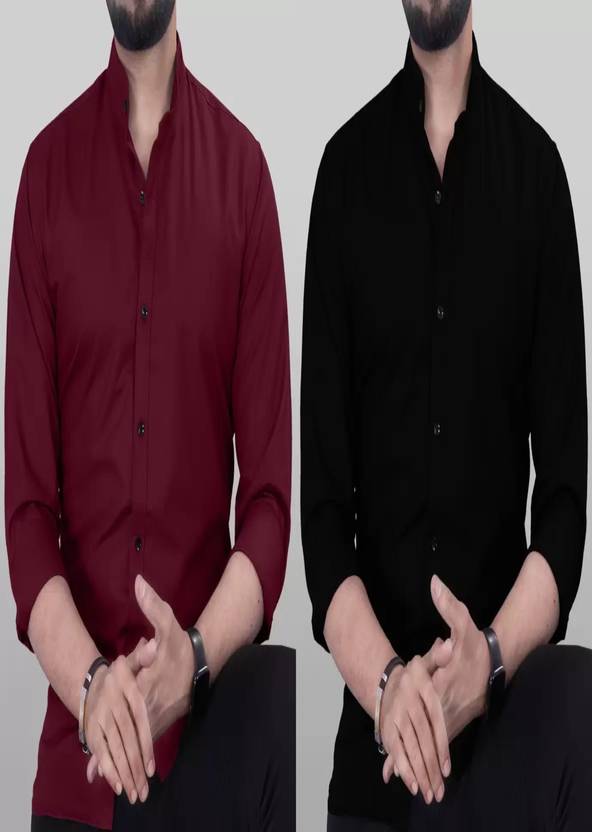 Tanip Men Solid Casual Maroon, Black Shirt (Pack of 2)