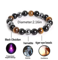 The Triple Protection Bracelet offers a variety of benefits, both spiritually and emotionally, thanks to the combined power of Tiger’s Eye, Black Obsidian, and Hematite. Protection from Negative Energy - Black Obsidian acts as a powerful shield, guarding you against harmful influences, psychic attacks, and emotional drain, Increased Confidence and Courage - Tiger’s Eye enhances self-confidence, willpower, and personal strength, empowering you to face challenges with courage, Grounding and Stability - Hematite is well-known for its grounding effects, helping you stay emotionally and mentally stable, especially during stressful situations, Enhanced Focus and Concentration - Hematite also sharpens mental clarity and improves focus, making it easier to stay productive and make decisions with clear judgment. Emotional Balance and Stress Relief - The combined energies of the stones work to stabilize your emotions, promoting inner peace, reducing anxiety, and easing stress. Improved Intuition and Insight - Tiger’s Eye helps you see situations with better insight, increasing your intuition and helping you make wiser decisions.