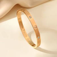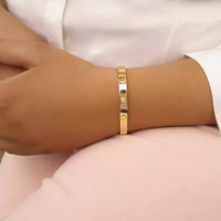 Sporting a stainless-steel base material, this bracelet is crafted for durability and long-lasting wear. The gold-plated finish adds a touch of sophistication while maintaining resistance to tarnishing. Boasting a carefully set zircon gemstone, it brings a delicate sparkle without overwhelming the design. The smooth edges and carefully polished surface provide a comfortable fit, ensuring it can be worn throughout the day without irritation.