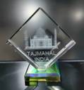 Crystal Cube With Taj Mahal ingraved - Diamond in Shape . Can be used as