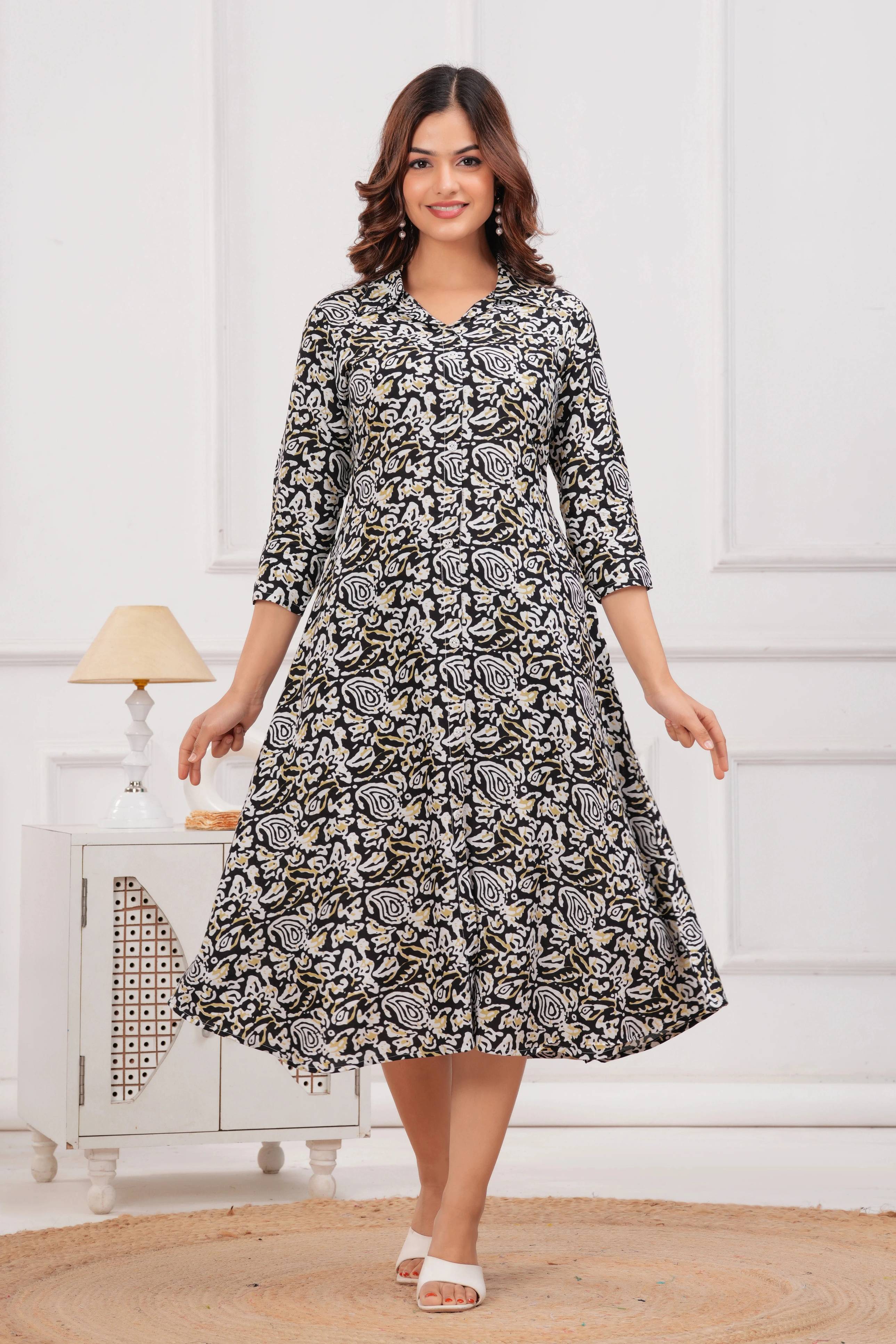 TANTANATAN Women Printed Frontslit Kurta (Black)