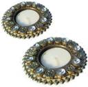 2 T-light Holder, Made In India, Metallic Finish candal holder with candal, The T- light candles can be replaced after every use, Looks good with burning t-lights, These Candles can be Used at Any occasion such as Festival, Birthday, Wedding, Ceremonies, Casual, Best suited for bedside, dining table, anniversary, birthday gift, Use with a white or colored tea light to create a soothing, peaceful ambience, Use in any room to add an element of contemporary Indian décor