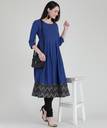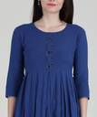 Women Solid Cotton Blend A-line Kurta (Blue)