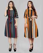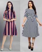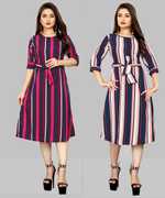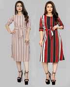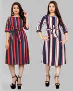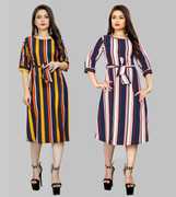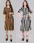 This is striped printed western dress which is made of fine quality crepe fabric and also it is stitched as western look. belt which is create tredy look on your outfit. stripe printed western dress has knee length and flared dress is available it can wear causual, party, function etc it is unique in pattern and 3/4th sleeve is available fabric is soft so it is comfortable to all day. we have also manufacture wester wear dress , party wear dress , one piece dress , bodycon dress , long gown , printed kurti , straight kurti, a-line dress , floral printed dress,low price dress , light weight dress , rayon kurti , straight dress , flared dress , skater dress , striped dress , weatern dress for women ,simple indo western dress , designer , stylist , long , party , wedding , short , kee length , black , blue , casual , bollywood , indian , new , fancy , winter , frock , formal , mini , midi , plus size , beautifull , new , girls dress with unique design